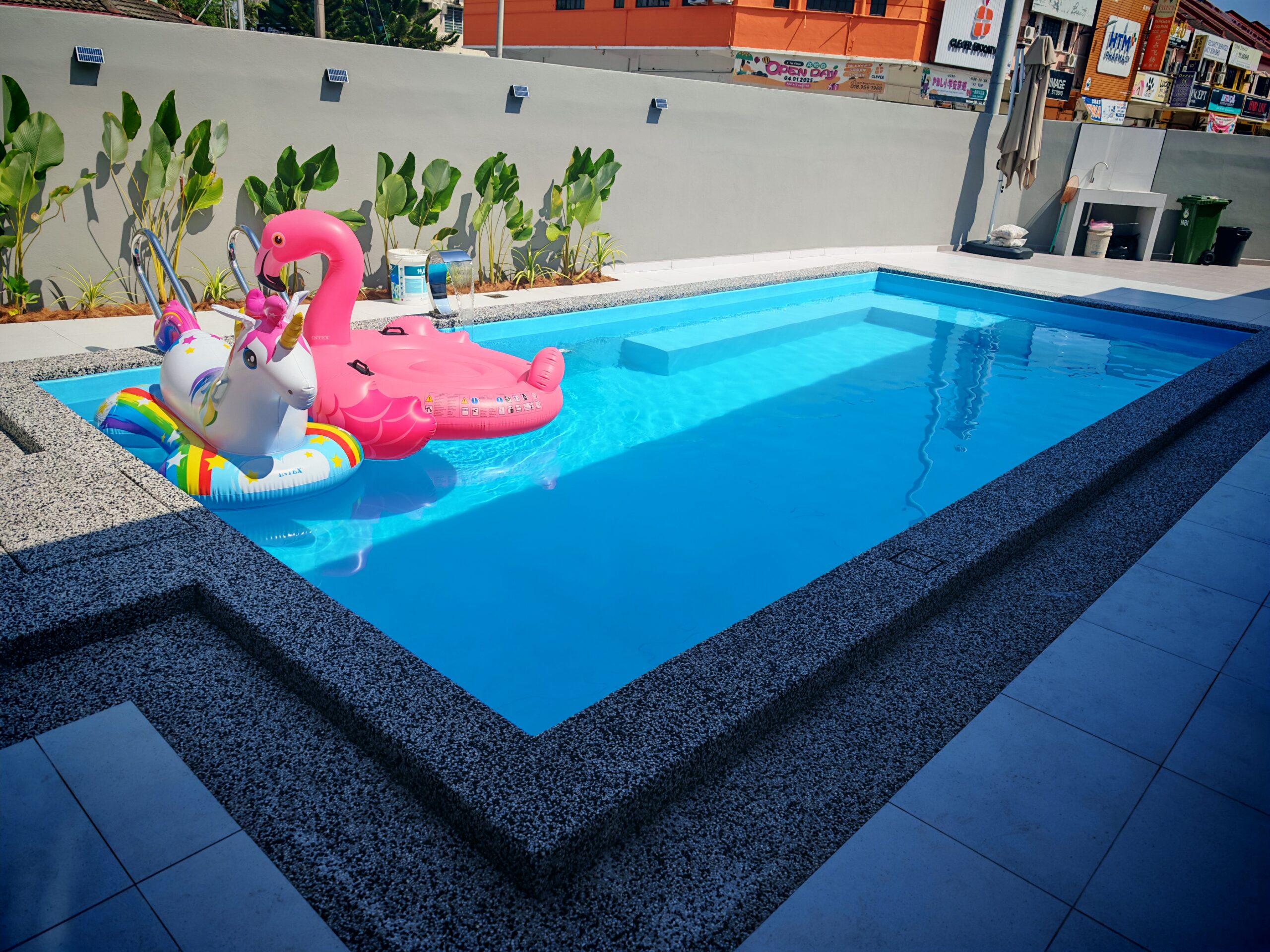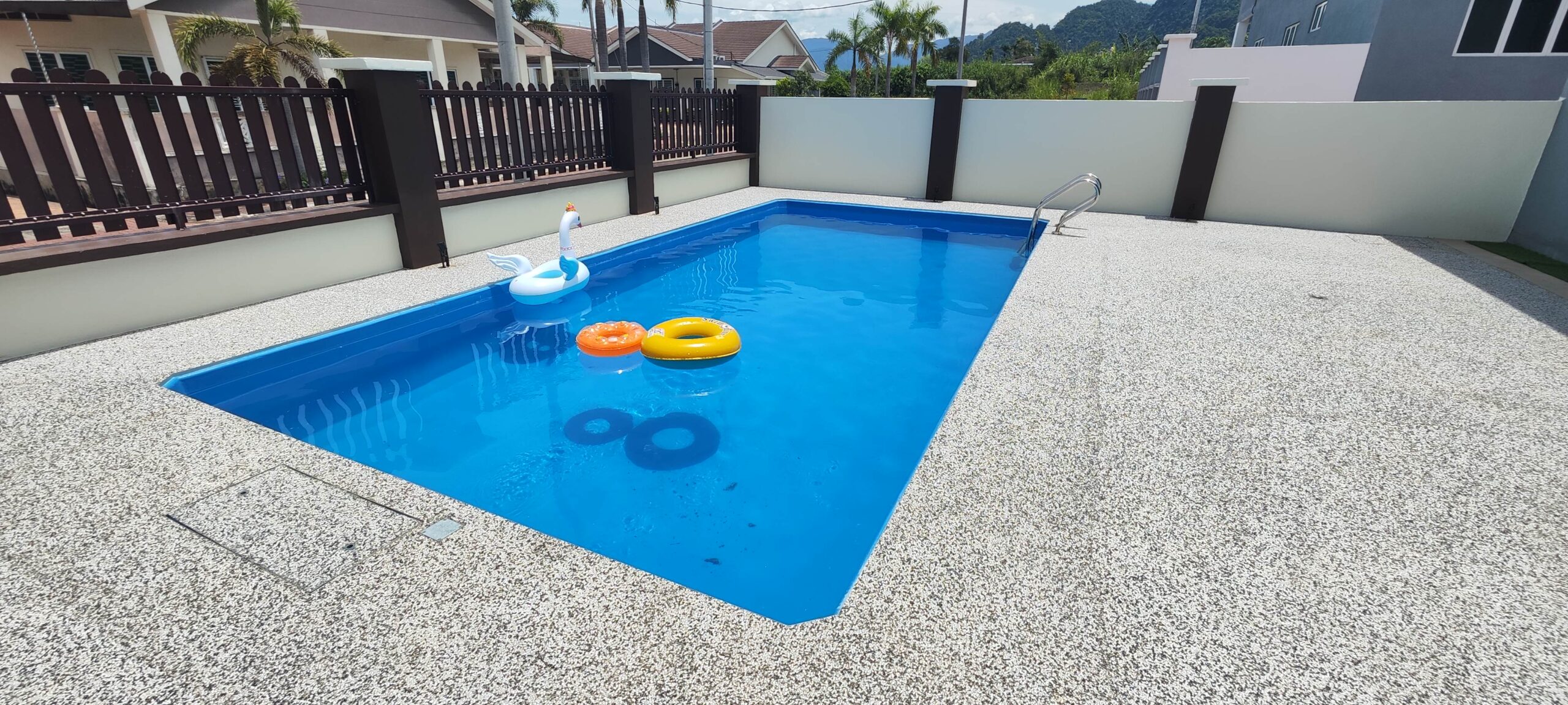 We just delivered this premium fiberglass pool straight from our Ipoh factory. It is now sitting perfectly inside an actual Malaysian backyard.
